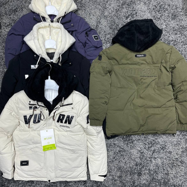 کاپشن مردانه ضخیم کلاه خز دار الیاف پر