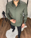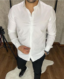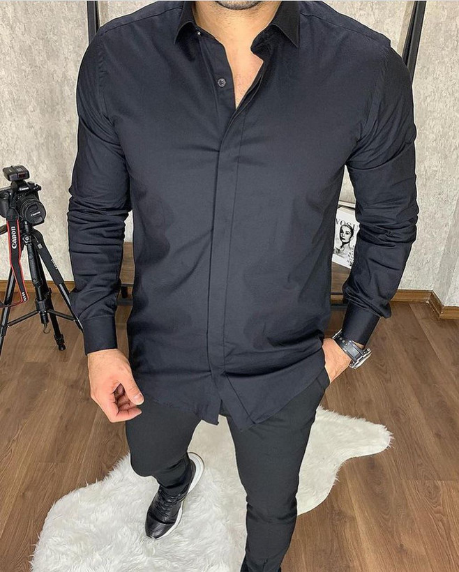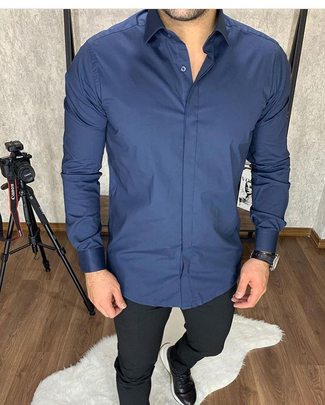 پیراهن مردانه آستین بلند سارینا کش مدل پولو دکمه مخفی