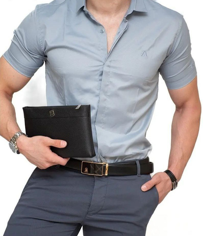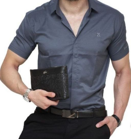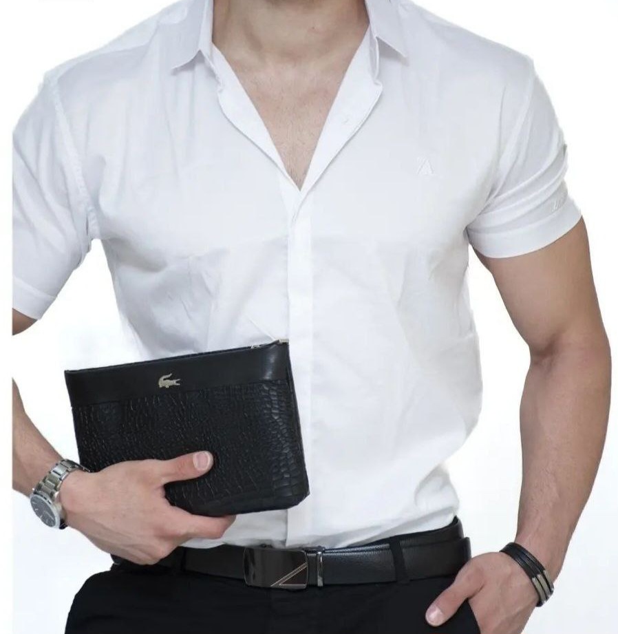 پیراهن مردانه آستین کوتاه سارینا کش مدل پولو دکمه مخفی