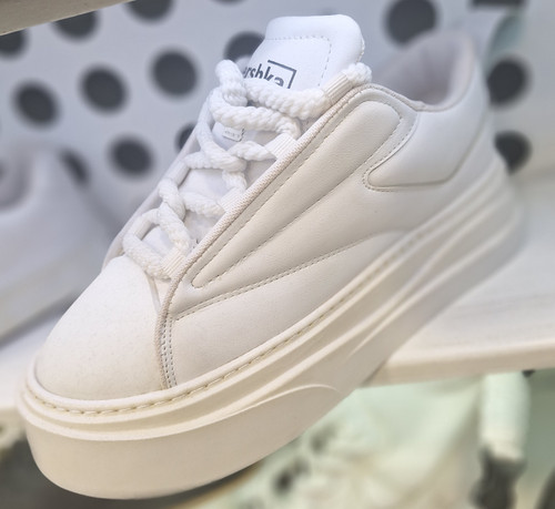 کفش کتونی مردانه دورنگ سفید مشکی کف سفید
