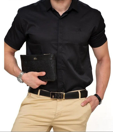 پیراهن مردانه آستین کوتاه سارینا کش مدل پولو دکمه مخفی