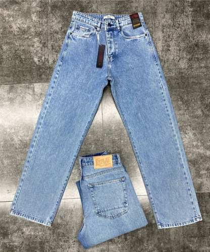 شلوار جین مردانه مدل بگ کج راه درشت بافت